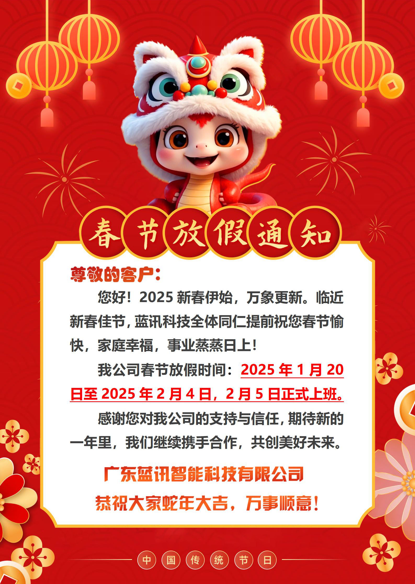 我公司春節(jié)放假時(shí)間:2025年1月20日至2025年2月4日,2月5日正式上班。感謝您對我公司的支持與信任,期待新的一年里,我們繼續(xù)攜手合作,共創(chuàng)美好未來。