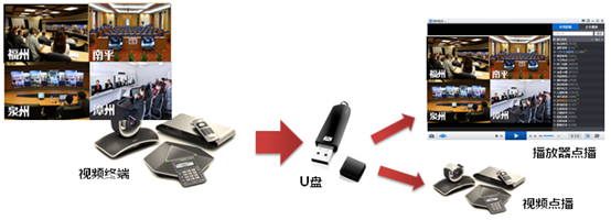 通過在終端上插入U盤,即可對會議進行實時的會議錄制,錄制內(nèi)容可播放器點播,也可使用終端點播。可以將用戶領(lǐng)導(dǎo)做報告、討論、開會,需要保留這些珍貴的會議資料供以后參考學(xué)習(xí),這樣大大提高了用戶的網(wǎng)絡(luò)信息化進程,增加網(wǎng)絡(luò)的利用率。